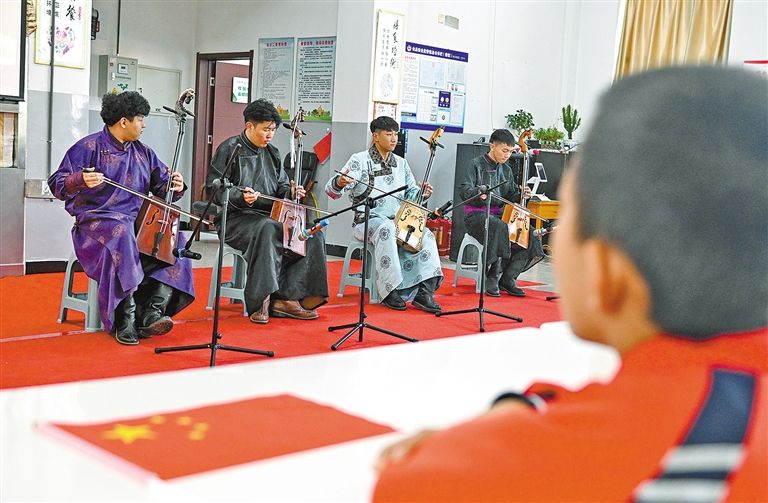 學校烏蘭牧騎藝術團積極開展惠民演出和公益服務,在藝術實踐中鍛煉專業(yè)技能、傳承紅色基因、貢獻青春力量。